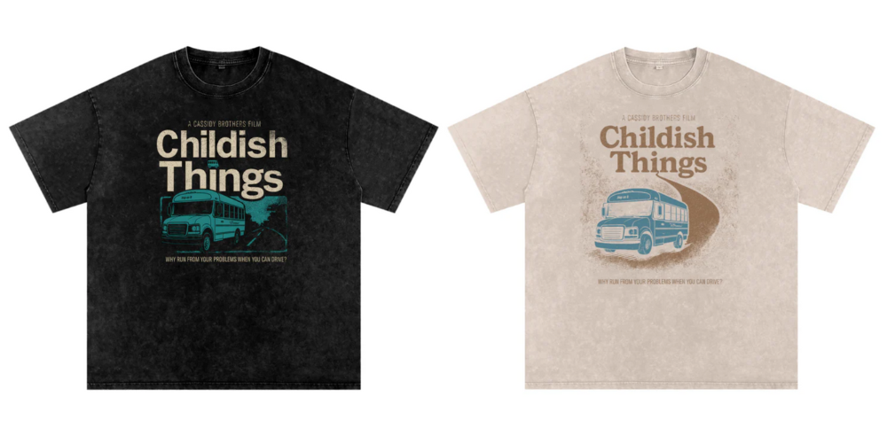 We’re giving away Childish Things t-shirts to three people who leave reviews online in the next week.