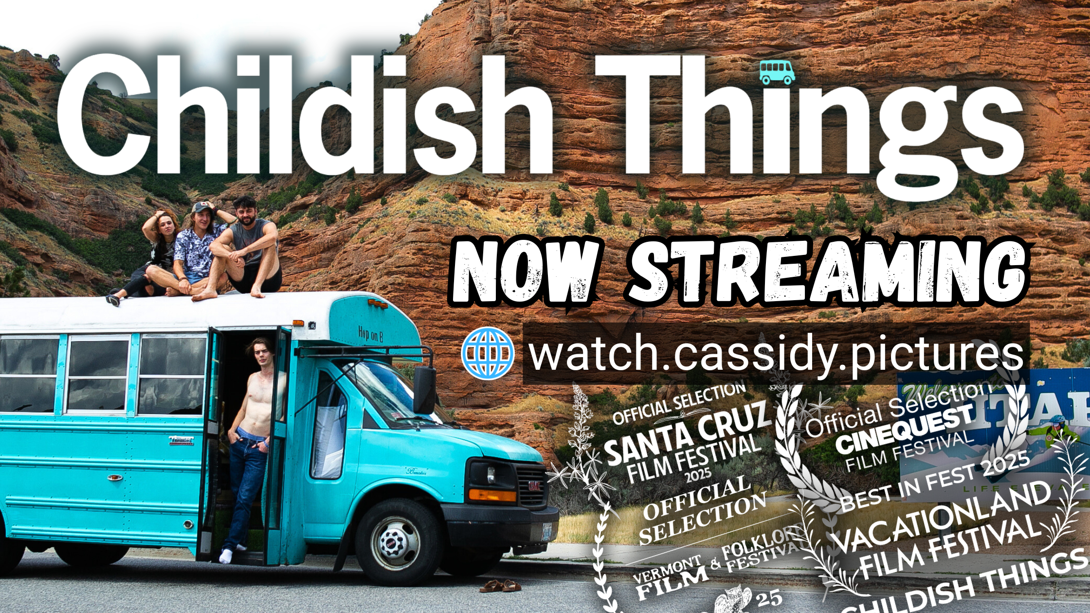 By continuing to be independent of big companies, we can retain the rights and control of Childish Things and (in theory) see some return on the blood, sweat, and mileage we’ve poured into this project. When you rent or buy Childish Things at watch.cassidy.pictures, you’re directly supporting the people who made it.