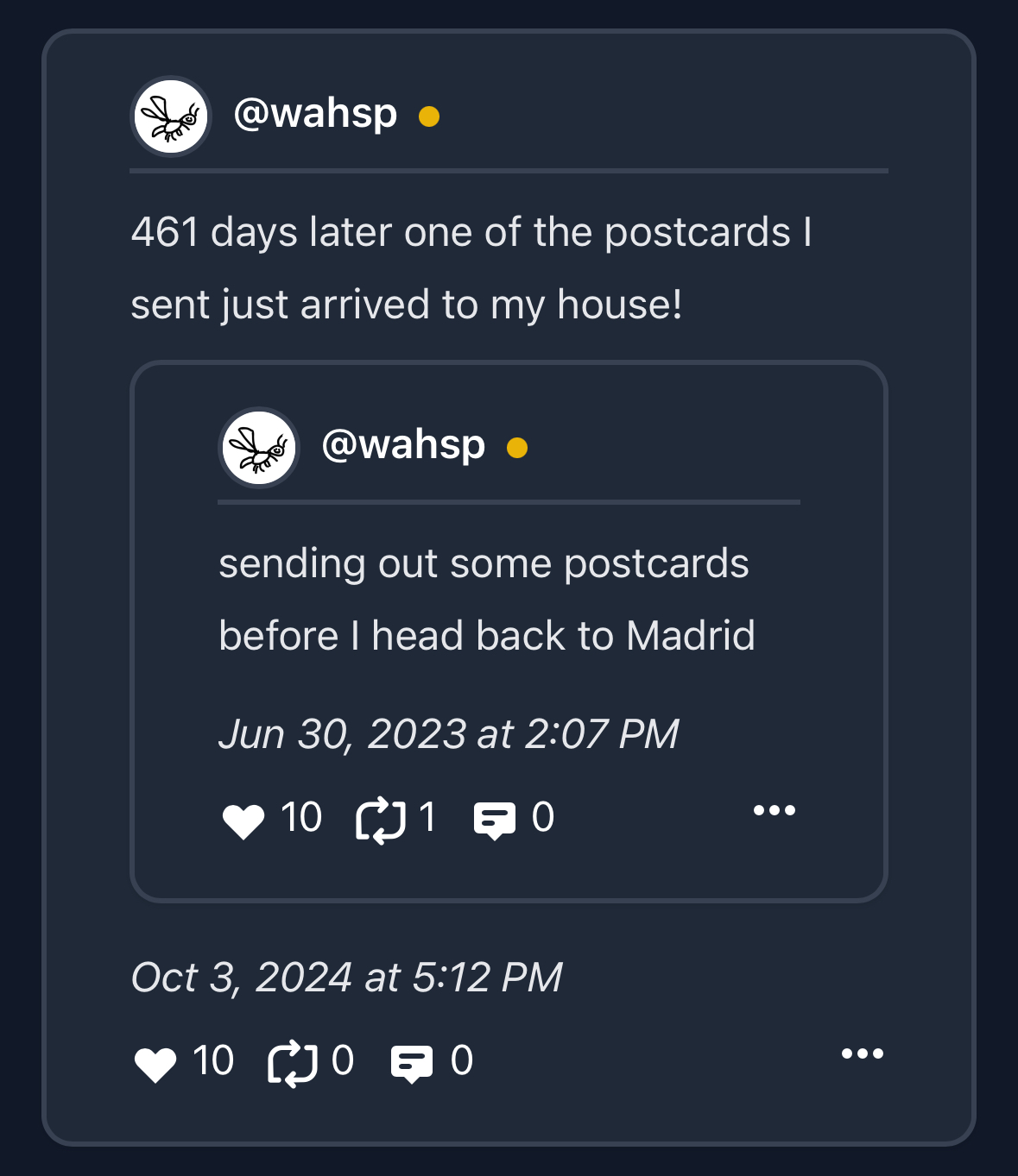 still in awe that it took the spanish postal service over a year to send out my postcards smh